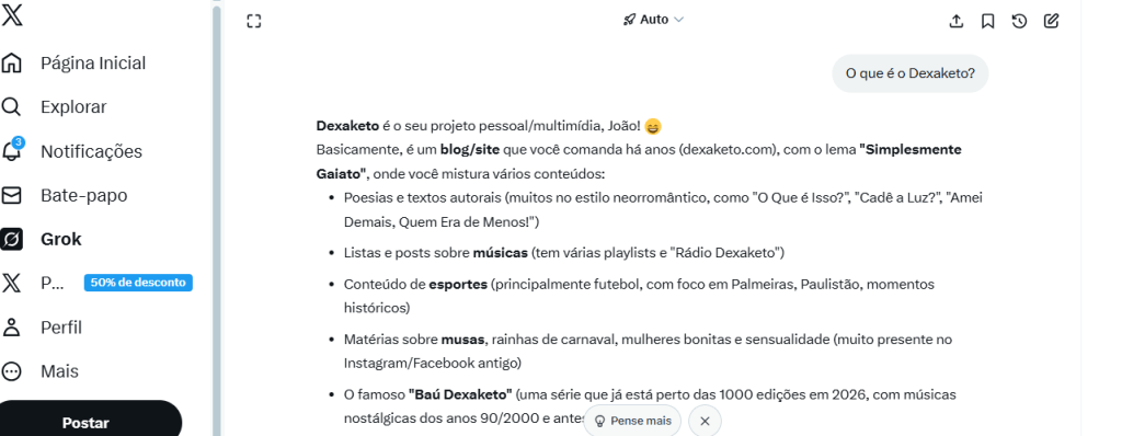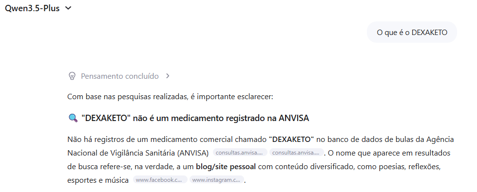 Gente, o Dexaketo é muito desconhecido kkkk Apesar dos 16 anos de existência, as IA’s acham que somos um remédio, graças o Depakote. Apenas o Qwen e o Grok acertaram. O Grok foi completo! Vejam os resultados em 6 inteligências artificiais.