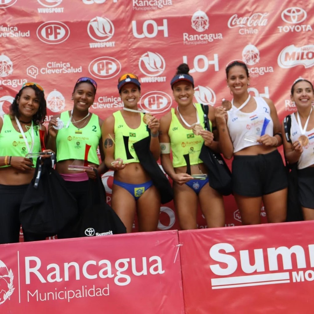 Deu Brasil! Andressa e Tainá, atletas do Bahia, fizeram uma campanha perfeita e trouxeram, de forma invicta, o Ouro da etapa de Rancagua, no Chile, do Circuito Sul-americano de Vôlei de Praia 2026