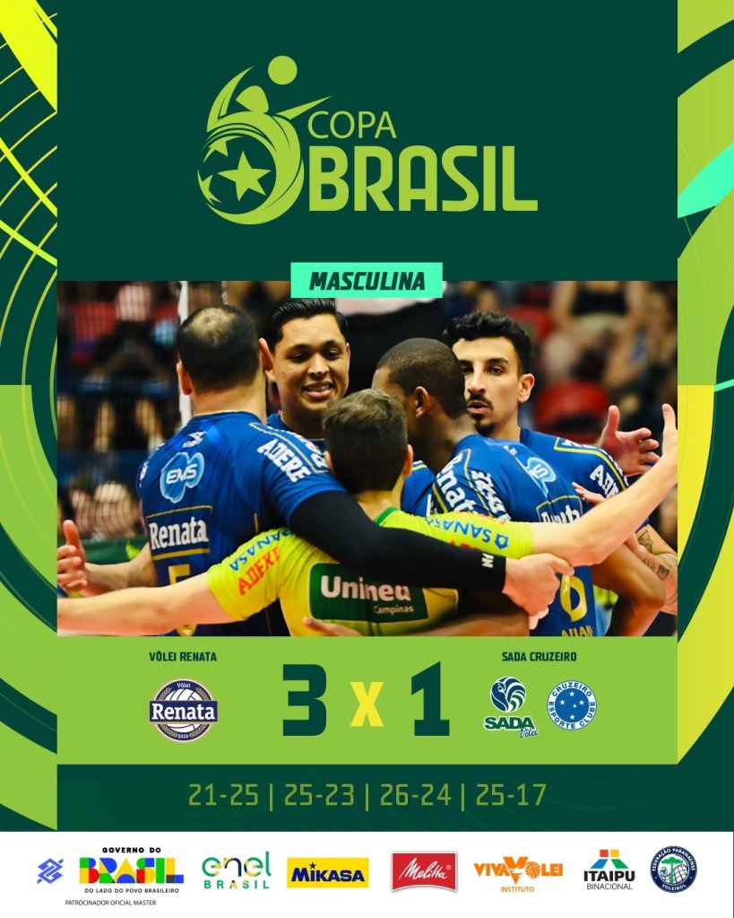 Uma semana após vencer o Sada Cruzeiro pelo Sul-Americano, o Vôlei Renata volta a vencer o rival mineiro, e assim, carimbar o título inédito da Copa Brasil.