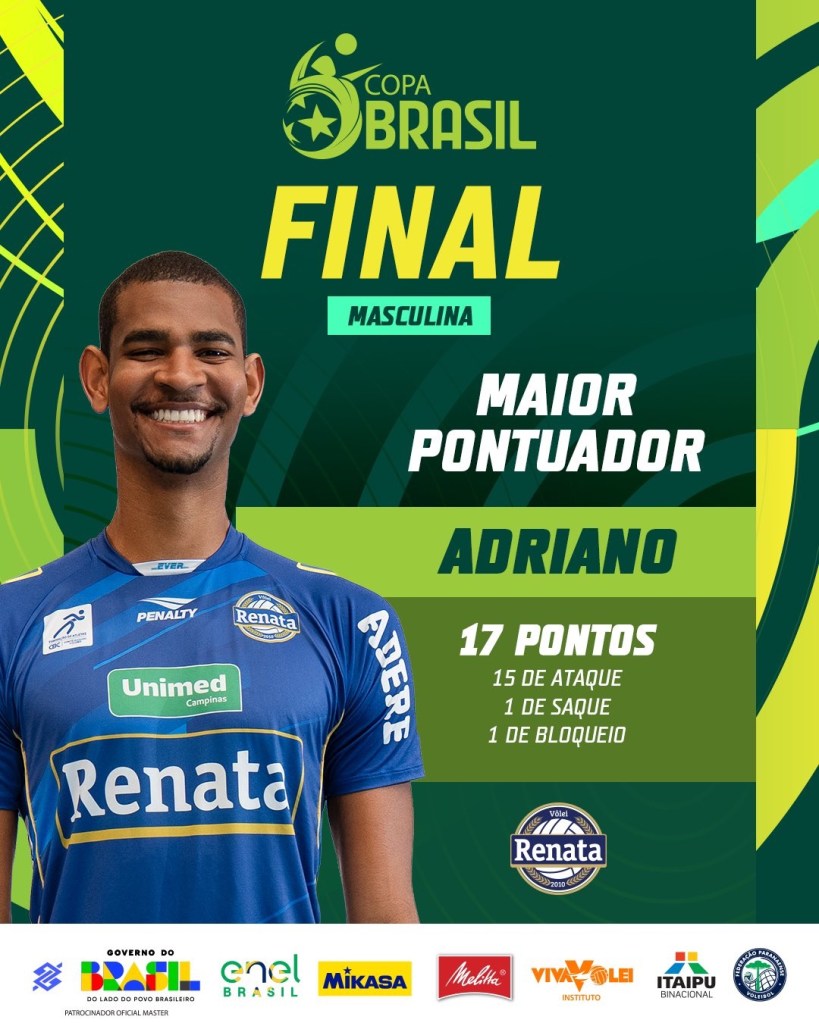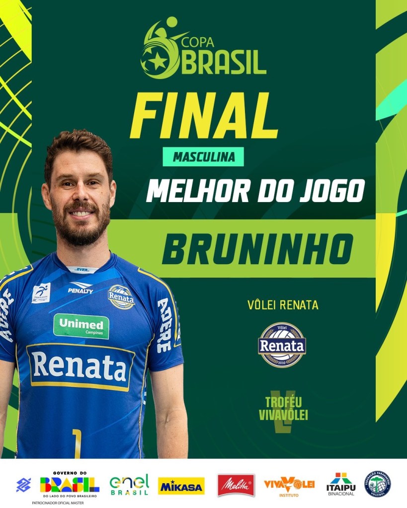 A diferença para o jogo deste domingo (8) ficou para o fato que a vitória foi menos emocionante e mais contundente. Mais um grandíssimo jogo de Bruninho! Dois títulos em uma semana! O Vôlei Renata é o novo campeão do Vôlei brasileiro.
